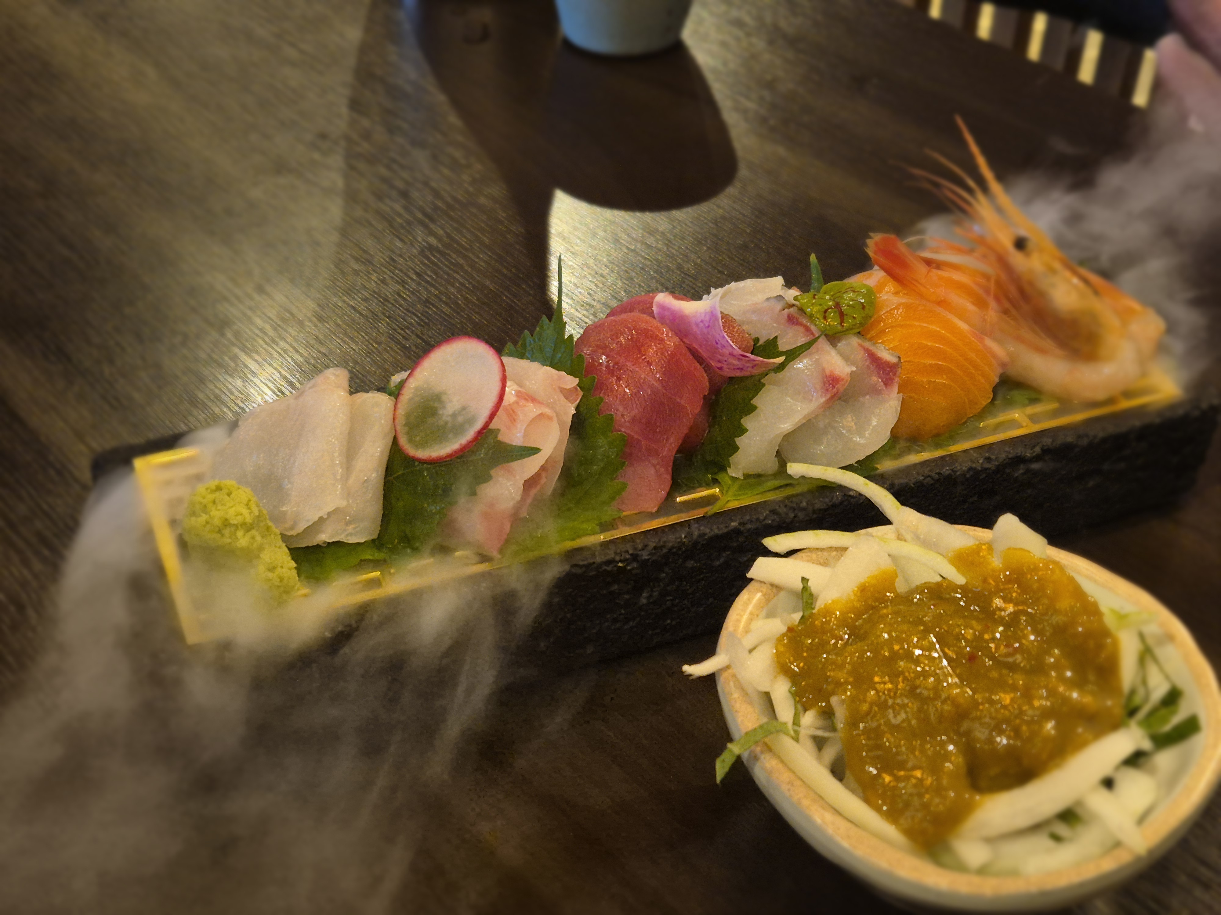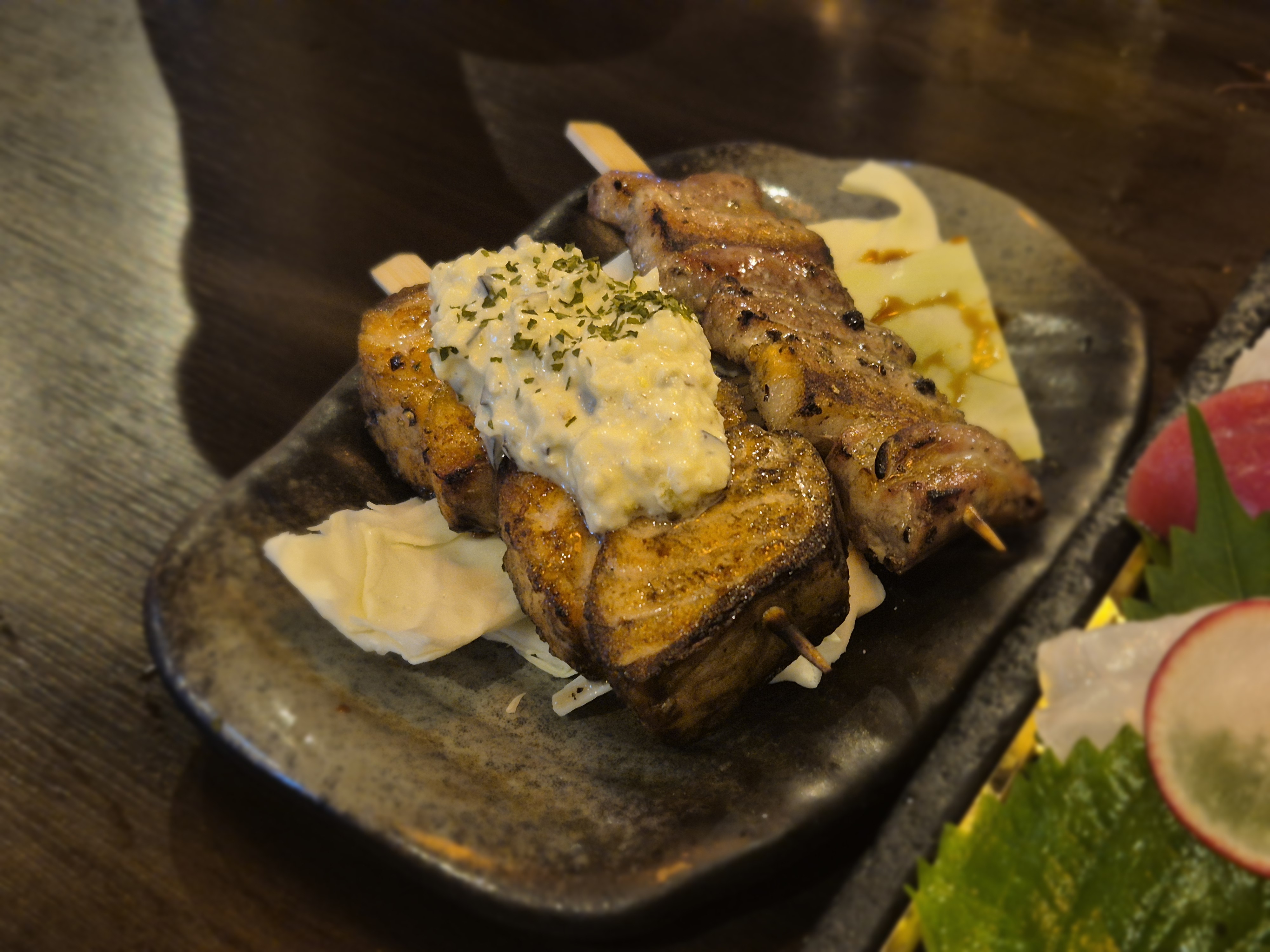 우리는 미니 모듬 사시미(12p) 와 야끼토리 5종을 주문했다. 야끼토리 5종은 일반 3종 스페셜 2종 이렇게 선택할 수 있는데 꼬치 종류가 너무 많아서 고르는데 애를 먹었다 ;;